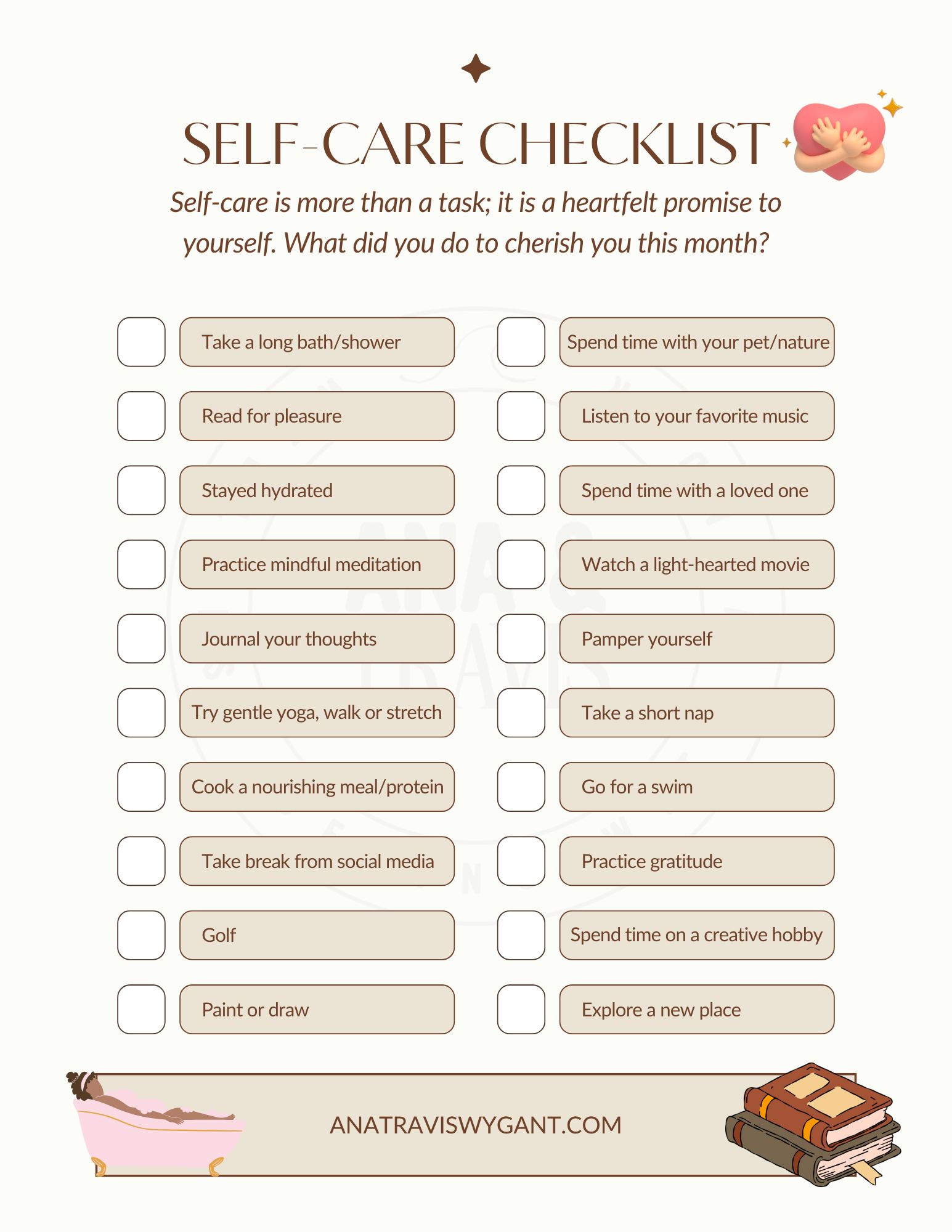 - Self-Care Checklist & Planner – Prioritize your well-being while on the go