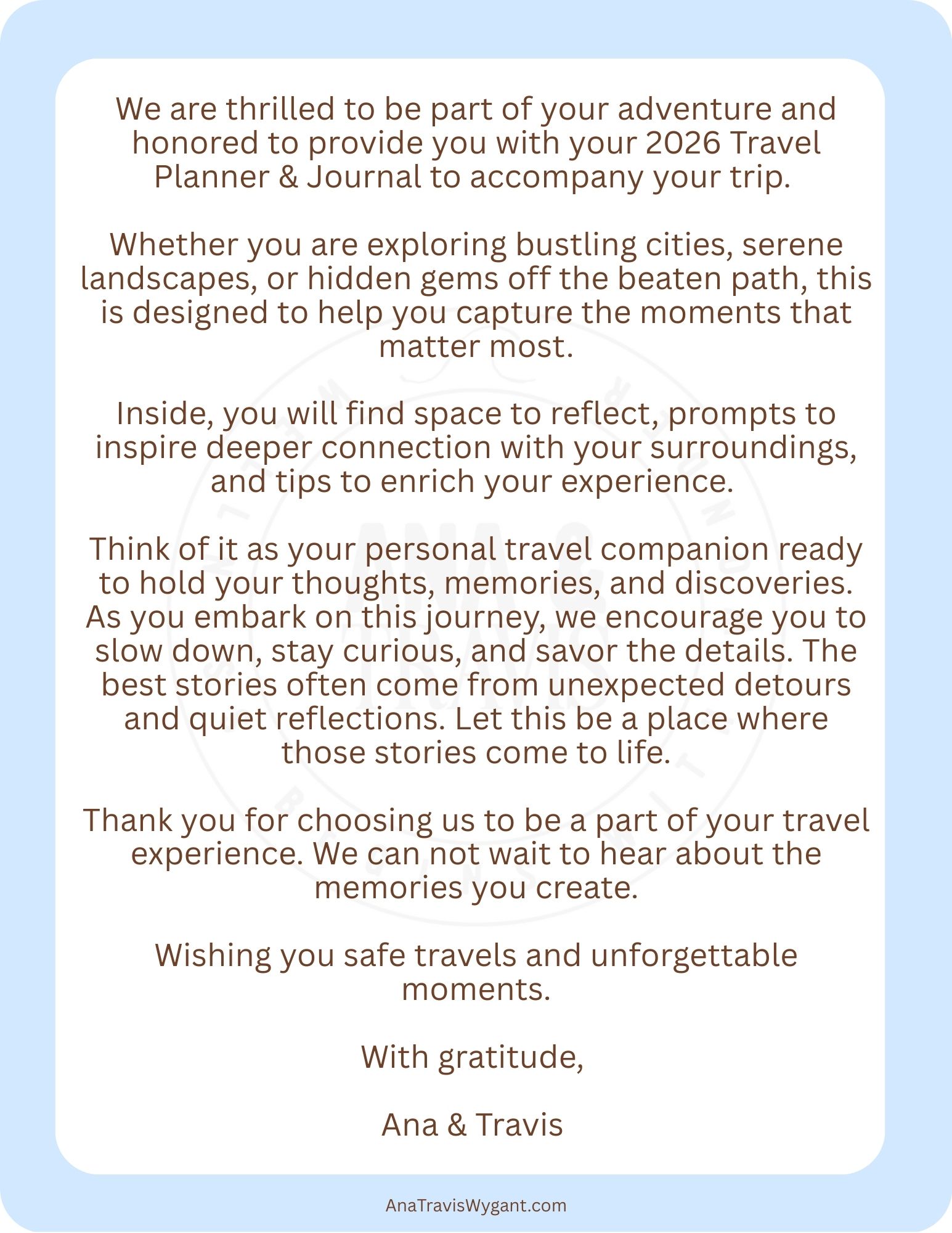 Kick off an incredible year of travel with our beautifully designed 2026 Travel Planner & Journal! It is the ultimate tool to help you organize, dream, and savor every moment of your journeys.