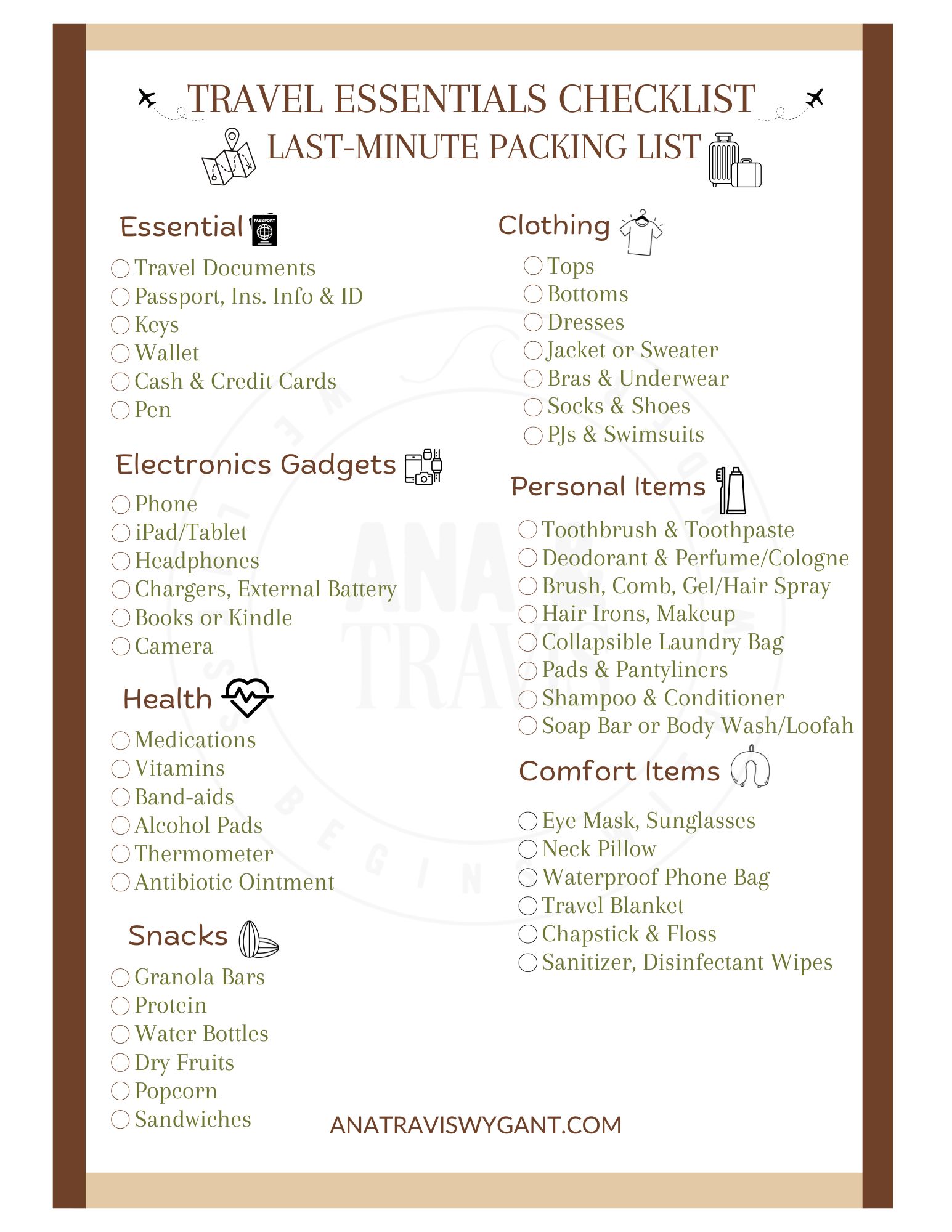 - Travel Essentials Checklists – Adult and child-specific versions so nothing gets left behind