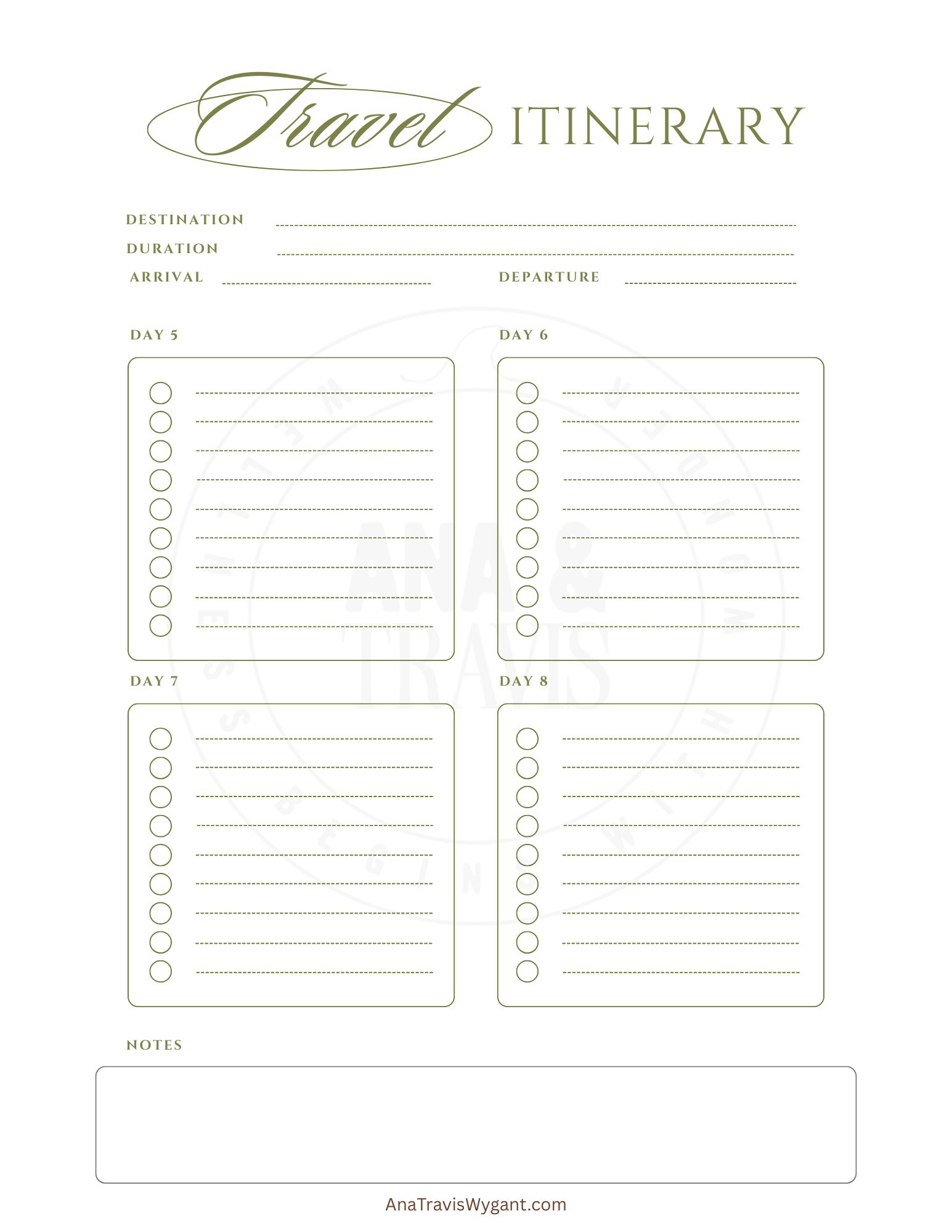 - Detailed Travel Itineraries (Days 1–8) – Organize every detail of your trip