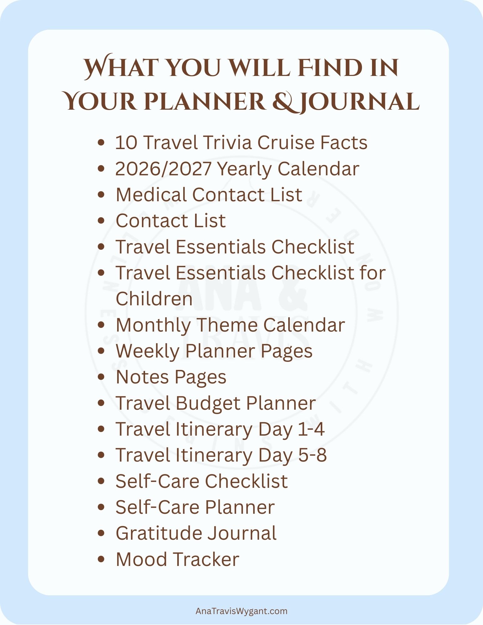 Whether you are setting sail on a cruise, exploring new cities, or enjoying a relaxing getaway, this planner helps you travel with intention, stay organized, and focus on what truly matters, creating lasting memories.